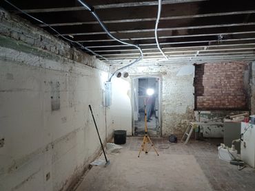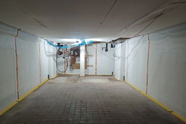The approach to this project was to install a Type C cavity membrane system. As the main basement area was going to be converted into a restaurant kitchen, it was decided that a fire retardant wall membrane would be installed. This can only be supplied and installed by a Delta registered contractor.