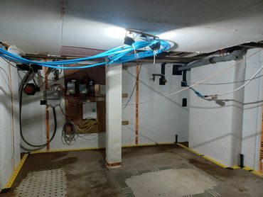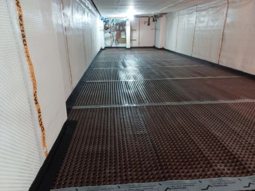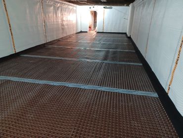 Perimeter and cross floor drainage channel was installed to collect any incoming water, diverting it to a pre-formed sump chamber, allowing for the water to be discharged efficiently.